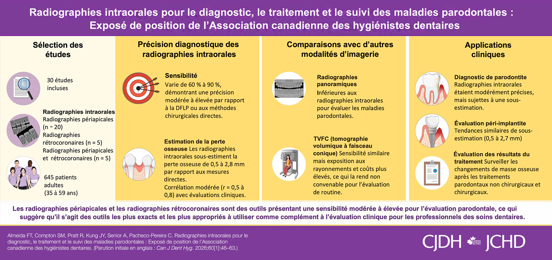 Plusieurs organismes de réglementation provinciaux ou territoriaux en hygiène dentaire accordent des crédits de perfectionnement professionnel pour les activités autodidactes de nature scientifique. Veuillez consulter les exigences de votre organisme de réglementation et de votre programme de perfectionnement professionnel pour obtenir plus d’information.