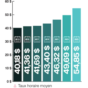 - Le salaire horaire moyen effectif au Canada est de 54,85 $